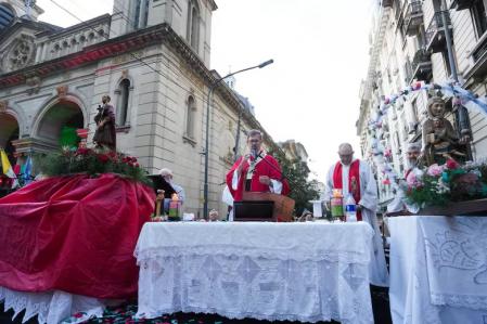 El momento central fue la procesión de la tarde, encabezada por el arzobispo de Buenos Aires, monseñor Jorge García Cuerva, quien condujo la columna de fieles por las calles aledañas, hasta el Congreso y por la avenida Rivadavia, antes de regresar a la parroquia. Tras la procesión, se celebró la misa principal frente a la iglesia, donde el arzobispo pronunció una homilía que resonó con fuerza en el contexto social actual. “Si necesitamos la fortaleza y la paz que sanan es porque hay heridas, estamos enfermos, y por eso necesitamos ser sanados”, expresó, aludiendo tanto a las dificultades personales como a las familiares y sociales. “No queremos estar ajenos a lo que le pasa a la sociedad: también necesitamos paz para nuestra Argentina”, agregó, en un llamado a superar la intolerancia y la falta de respeto.