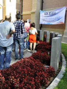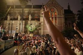 Buenos Aires, 10 de diciembre de 2019. Este domingo pasado al atardecer, familiares y amigos de los Doce de la Santa Cruz hicieron el tradicional acto de homenaje frente a la iglesia de San Cristóbal, cientos de personas compartieron el festival en las puertas de la iglesia donde cantaron Liliana Herrero y el grupo Cumbia Che. El encuentro en recuerdo de los 12 detenidos-desaparecidos de la Iglesia durante la última dictadura cívico militar se hizo este año bajo la consigna "los derechos humanos vuelven a la Casa Rosada".