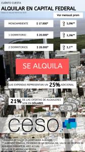 En n煤meros, el alquiler de un departamento de un ambiente en promedio en la ciudad se ubica en los $440.643 mes, un dos ambientes se puede alquilar por $524.907, mientras que un tres ambientes lo hace por $707.201, de acuerdo a Zonaprop.