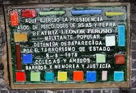 Uno de los nombres más emblemáticos de esa generación es el de Beatriz Leonor Perossio, psicóloga, militante y dirigente gremial, desaparecida el 8 de agosto de 1978. Su figura encarna el compromiso ético y político de una profesión que, lejos de limitarse al consultorio, se pensó a sí misma como herramienta de cambio social.
