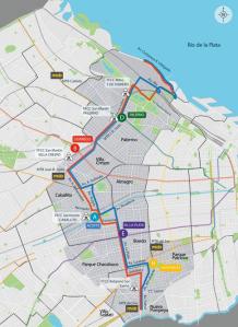 La línea T1, que se implementará oficialmente en 2026, será transversal y cruzará casi todas las líneas de subte. Tendrá 71 paradores, de los cuales 11 serán icónicos, ubicados en puntos neurálgicos como Caballito, Palermo y Aeroparque. Estos paradores incluirán espacios para bicicletas y lockers especiales. La frecuencia será de un servicio cada cuatro minutos en hora pico, con una parada cada 500 metros.