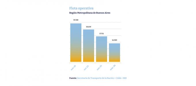 La contracci贸n de la oferta es desigual seg煤n la jurisdicci贸n. Las l铆neas interjurisdiccionales, que conectan la Ciudad con el Gran Buenos Aires, son las m谩s afectadas, con una ca铆da del 40% en su flota operativa. En contraste, las l铆neas que circulan exclusivamente dentro de la Ciudad Aut贸noma de Buenos Aires registran una merma menor, del 5%. Esta diferencia se explica por la estructura de financiamiento y la dependencia de las compensaciones estatales. Seg煤n el relevamiento, la flota actual es significativamente menor a la de a帽os anteriores: se estima que hay unos 2.359 coches menos en funcionamiento que en 2019.